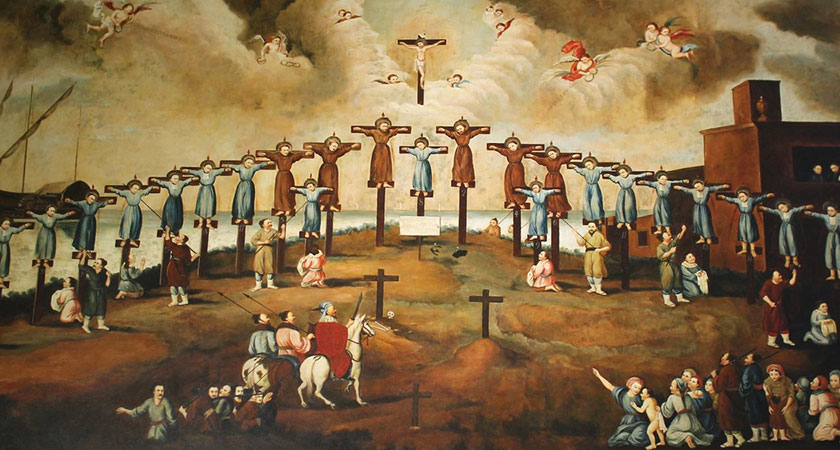 Depois da perseguição de 1597 que deu ao Japão o seleto grupo de 23 mártires guiados por São Pedro Batista, a Igreja pode desfrutar de um período de grande fervor durante o governo do imperador Cubosama e pôde difundir-se amplamente.